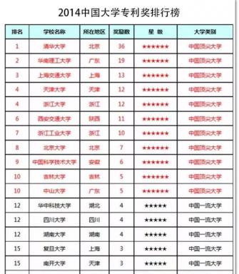 “中国专利奖”是我国最权威的 “国家级专利奖项”。清华大学有36项专利获奖,位居第一;华南理工大学有19项,名列第二;上海交通大学获13项专利奖励,居第三;天津大学和浙江大学并列第四;西安交大有11项,名列第五。国家专利奖数量是体现大学科技贡献能力的重要标志。