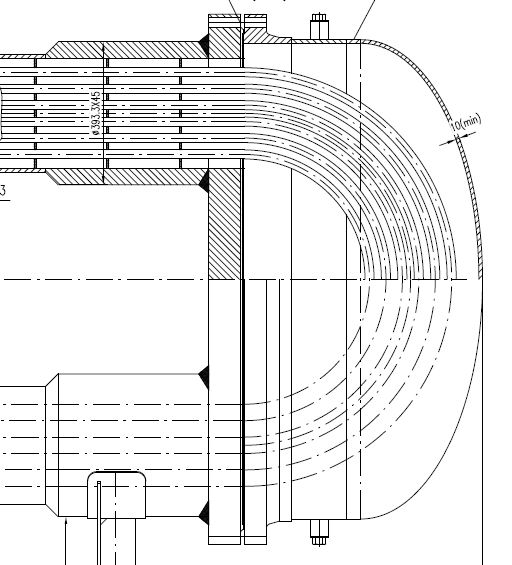 发卡换热器,非圆法兰可以按照HG/T20582设计,封头按照1/2椭圆封头初定厚度